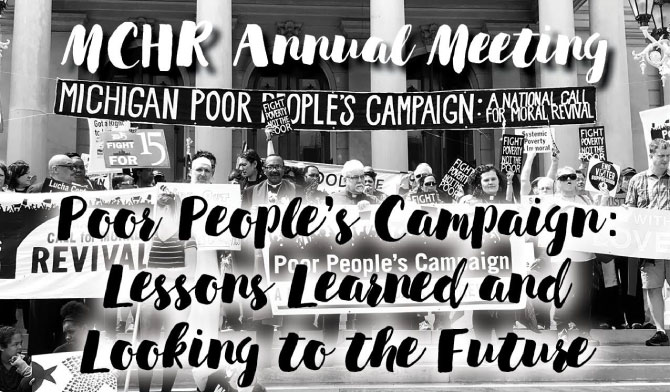 Michigan Coalition for Human Rights Annual Meeting is scheduled for 7 p.m., June 21, 2018 at Our Mother of Perpetual Help Parish in Oak Park. Keynote speaker Rev. Ed Rowe and others will talk about the 2018 Poor People’s Campaign.