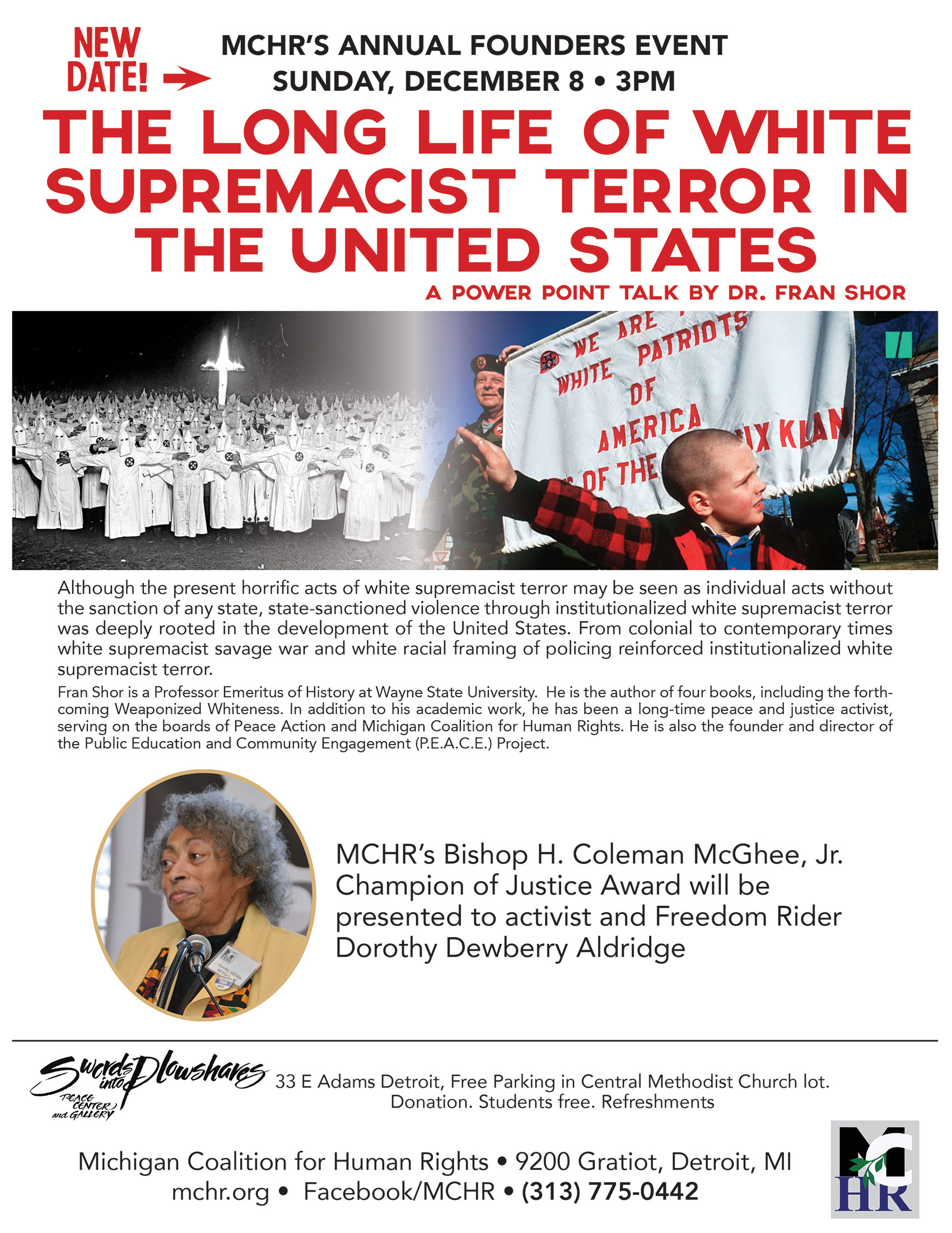 MCHR Founders Day will feature a presentation from Dr. Fran Shor, MCHR Advisory Board Member and Professor Emeritus of History at Wayne State University.